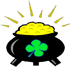 Shamrocks were laid out on the floor, one immediately in front of the girlies door, leading down the hall, through the kitchen, under the table, through the livingroom, under the ottoman to a "pot 'o gold" containing gold wrapped chocolates.